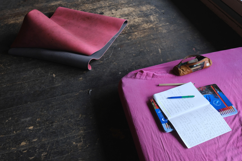 « Arrivant à Bienne à minuit, je suis montée jusqu’au bord d’une forêt noire sur la colline. En cherchant la porte du pavillon scout par laquelle je pouvais entrer, je sentais déjà sa présence. Comme souvent, mille questions me traversaient : qu’est-ce que je faisais ici, si loin de Londres ? Qui allait être là ? Et surtout, que serait réellement ce moment ? J’avais suivi une intuition, après avoir lu les intentions de la résidence qui avaient résonné profondément en moi. Oui, je voulais écouter, bouger, utiliser ma voix — et oui, je suis inlassablement curieuse de la forêt. Mais surtout, je voulais vivre cette expérience en communauté. »